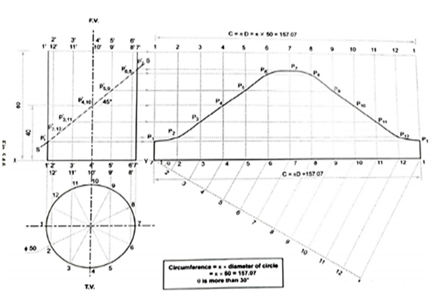 development of surface of a cylinder having base diameter 50 mm and axis height